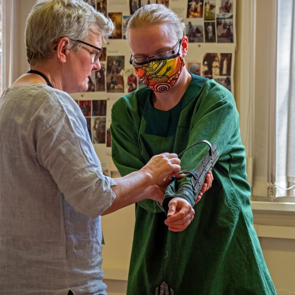 With a cast of made up of dozens of local people, all leading their own busy lives alongside the production, designing, making and fitting costumes for The Coppergate Woman was always going to be a mammoth task. Fortunately, YTR is blessed with the immensely talented duo, Hazel Jupp, Head of Wardrobe, and Janet Hull, Deputy Wardrobe Supervisor, who together with the generous help of more than 25 volunteers, have brought the play to life with an exquisite range of costumes.