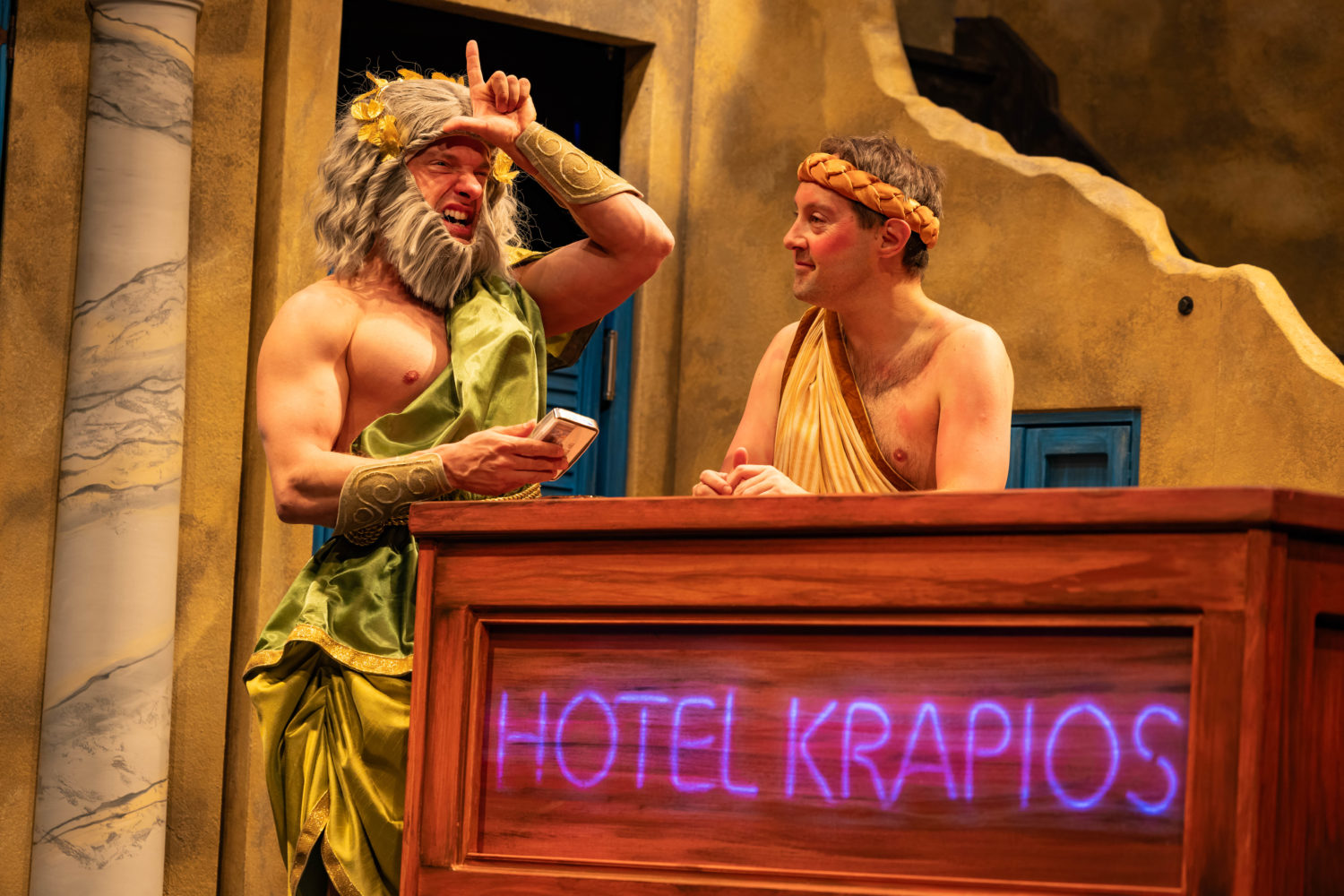 When the stability of Olympus is threatened by the marriage of Zeus’s daughter Hebe to a mere mortal, the King of the Gods hatches a plan to derail the wedding. Three actors play 40 characters in this mythical farce through Ancient Greece, the Underworld and back. Expect sensational physical comedy, outrageous jokes, fast-paced chaos, and more togas than you can smash a plate at.